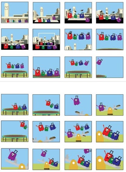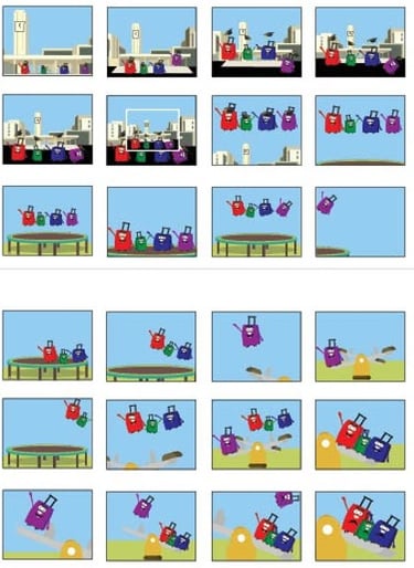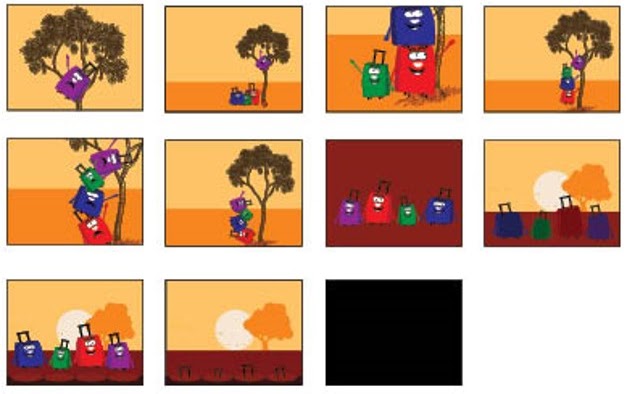 Suddenly, their friend on the opposite side flies away, and the other three friends are left laughing and looking for their lost friend. They finally find their friend stuck on a branch of a nearby tree.