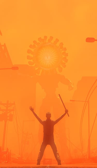 The theme of the short film is to convey the severity of the crisises in an exaggerated and frightening manner, creating a sense of fear and terror in the viewers. The use of orange color, lighting choices, and fog will enhance the atmosphere and contribute to the feeling of danger. The environment will be immersive, drawing the viewers into the world of the crisises.